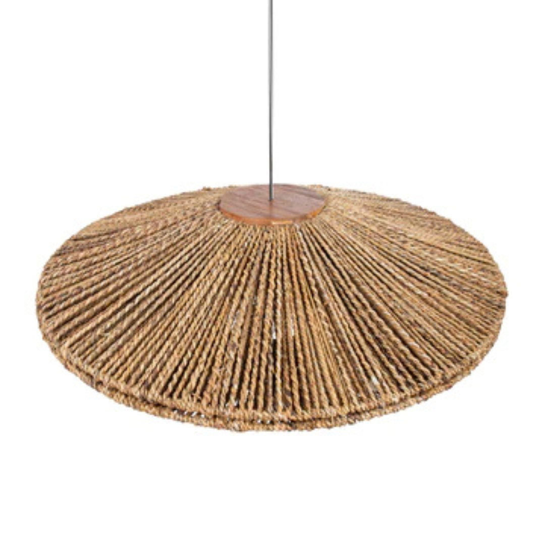 -This pendant lamp is a testament to eco-conscious design, crafted from reclaimed teak wood and natural abaca. By choosing this lamp, you're not only illuminating your space but also supporting sustainable practices.