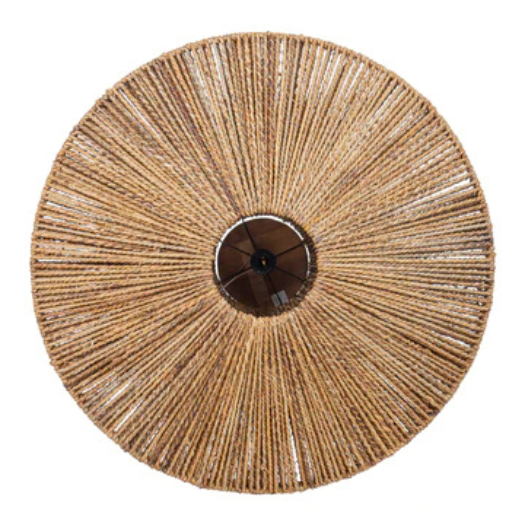 -Handwoven abaca detailing adds a touch of rustic elegance to this pendant lamp. Each piece is crafted with care and attention to detail, making it a unique addition to your home.
