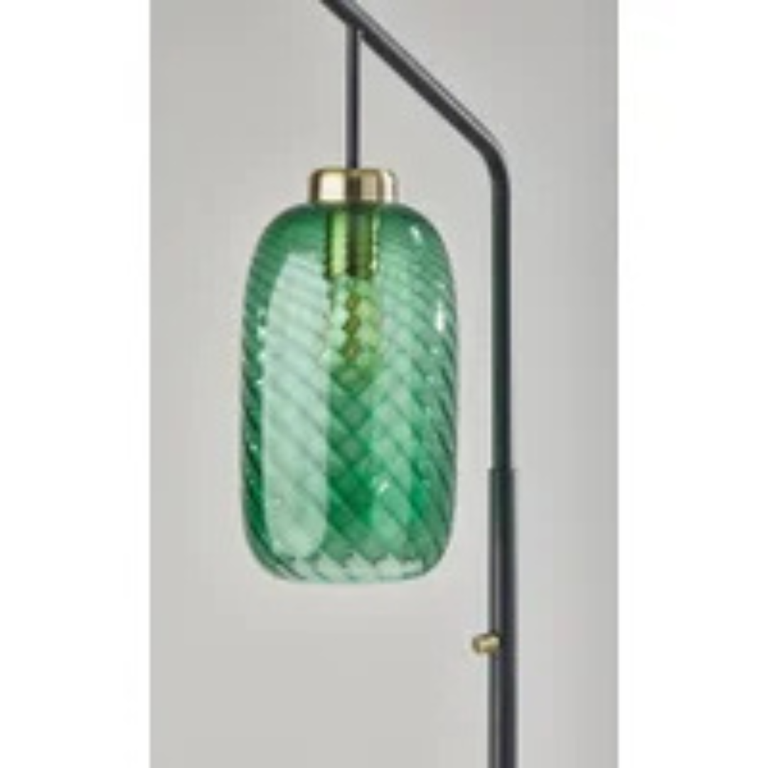 -The Derrick Floor Lamp features a unique and eye-catching green swirled glass shade. This intricate design adds a touch of sophistication to the lamp, making it an artful addition to your decor.