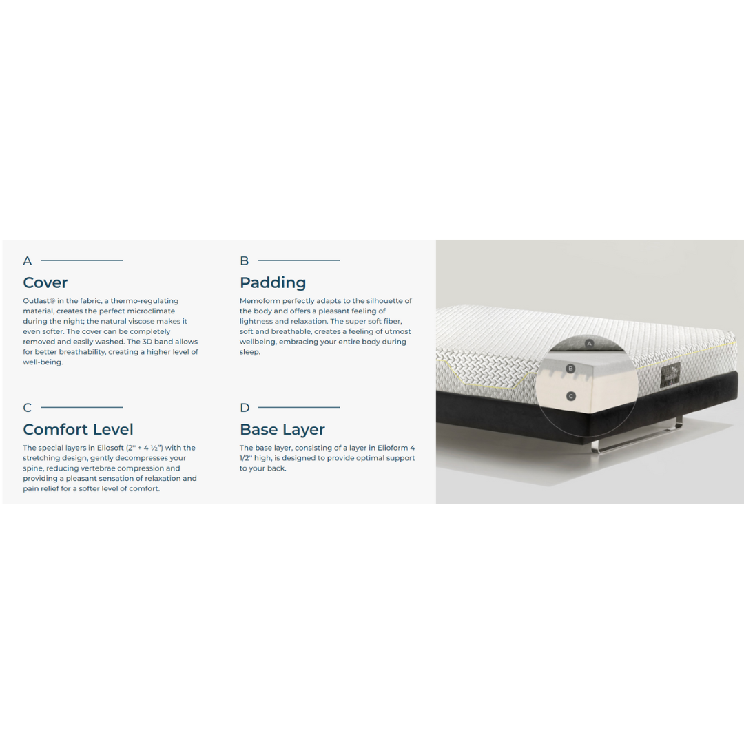 | Eliosoft and Elioform | *Immerse yourself in the perfect blend of Eliosoft and Elioform materials. The MagniStretch mattress combines these elements to provide a medium-firm comfort level that caters to the needs of those seeking a balance between support and plushness. |